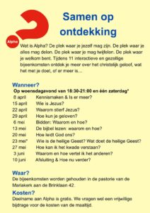 In het najaar start ook in onze parochie Sint Jan- Goede Herder een Alphacursus. Meer informatie in een volgende Klepel.