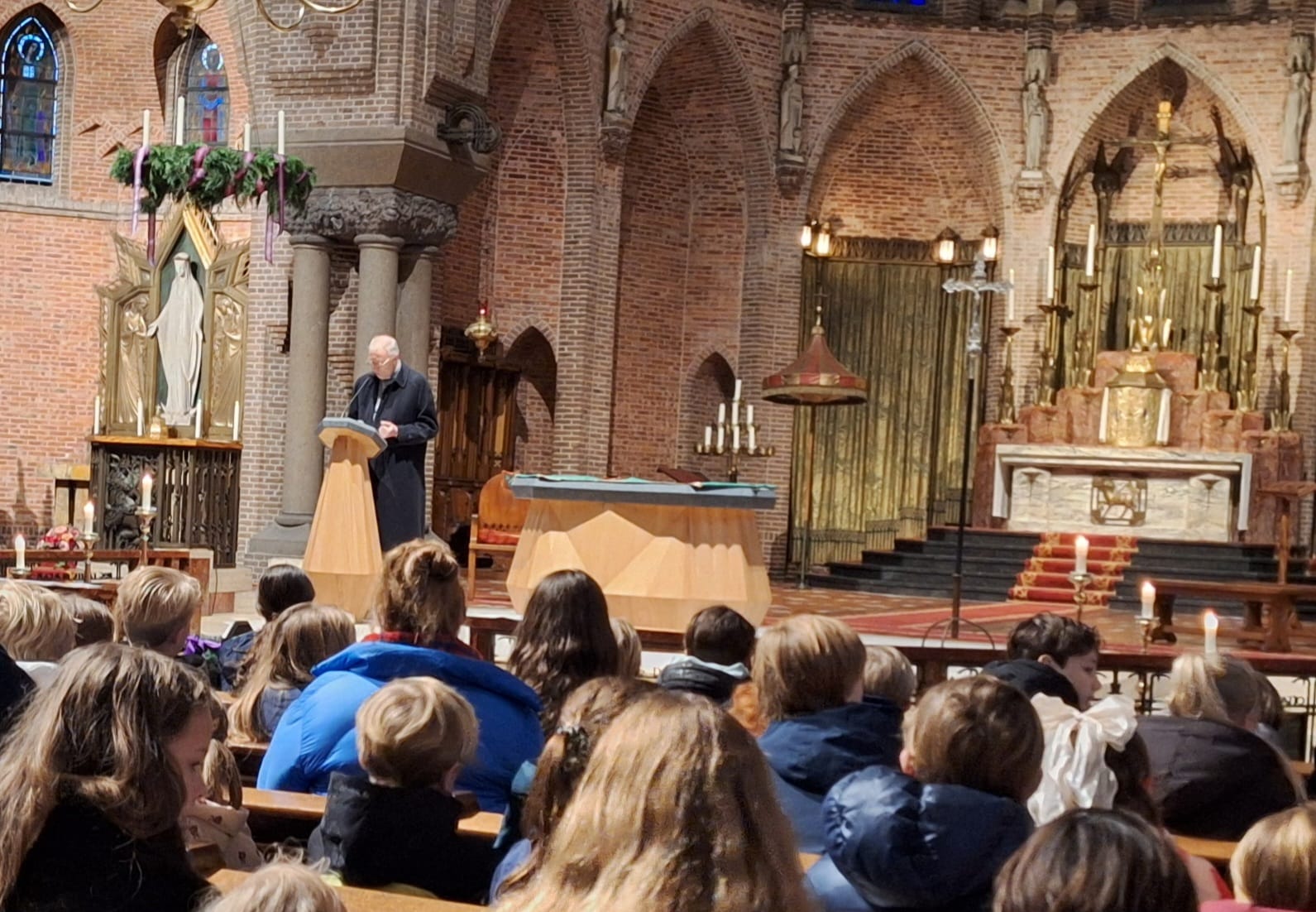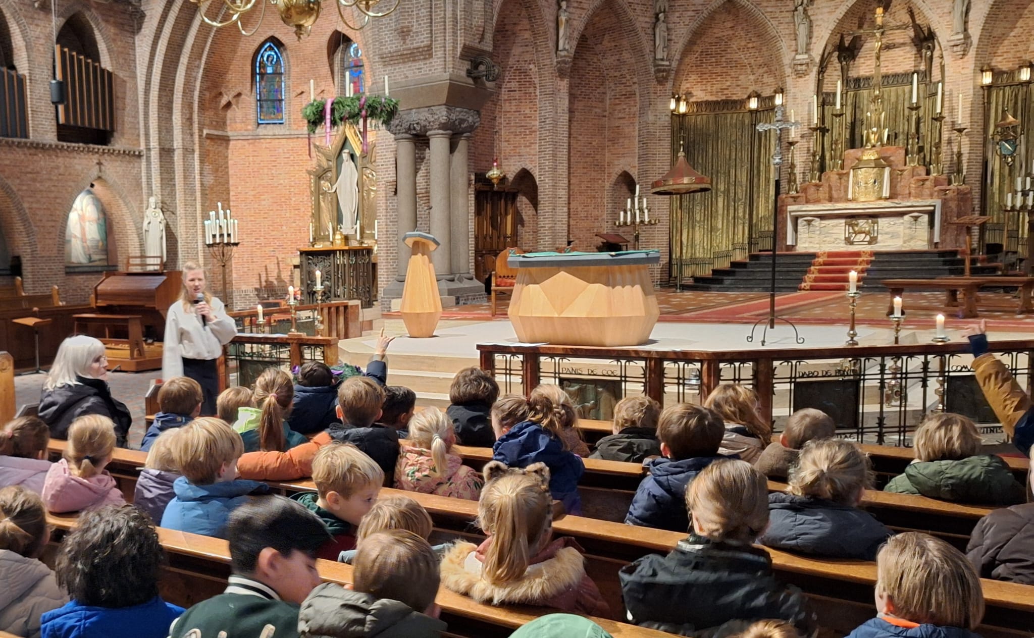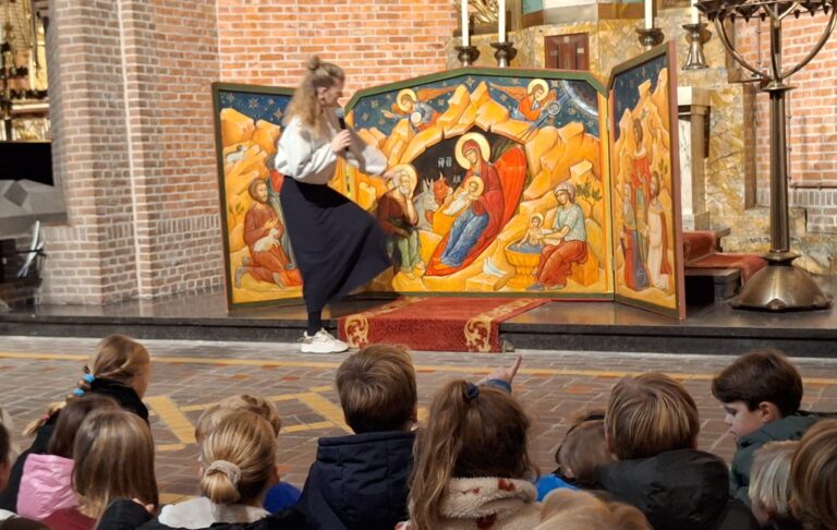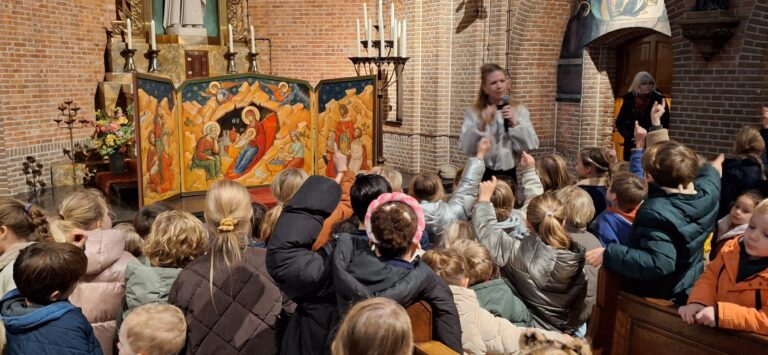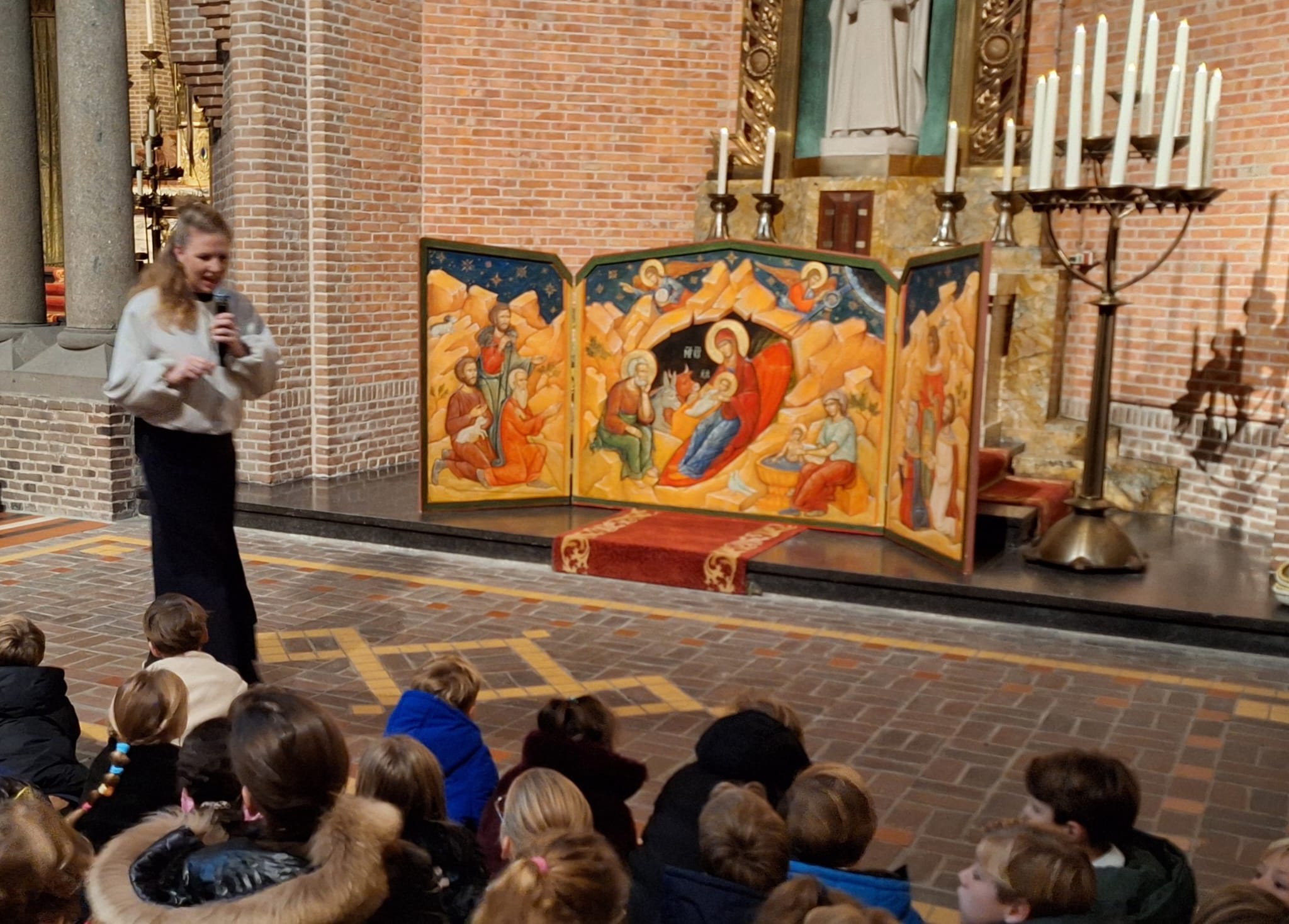 Bij het mooie Kerstdrieluik voor het Jozefaltaar werd uitleg gegeven aan de kinderen.