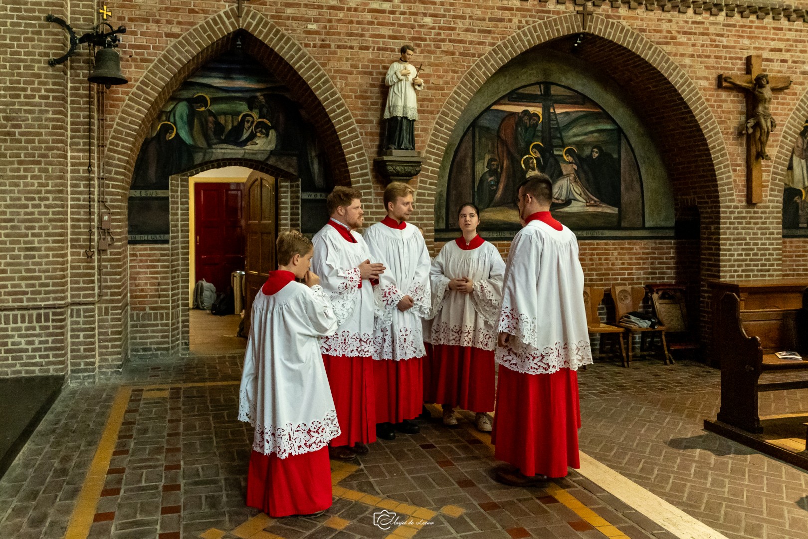 Meestal ben je met meerderen tegelijkertijd misdienaar/acoliet. De taken worden dan onder elkaar verdeeld.